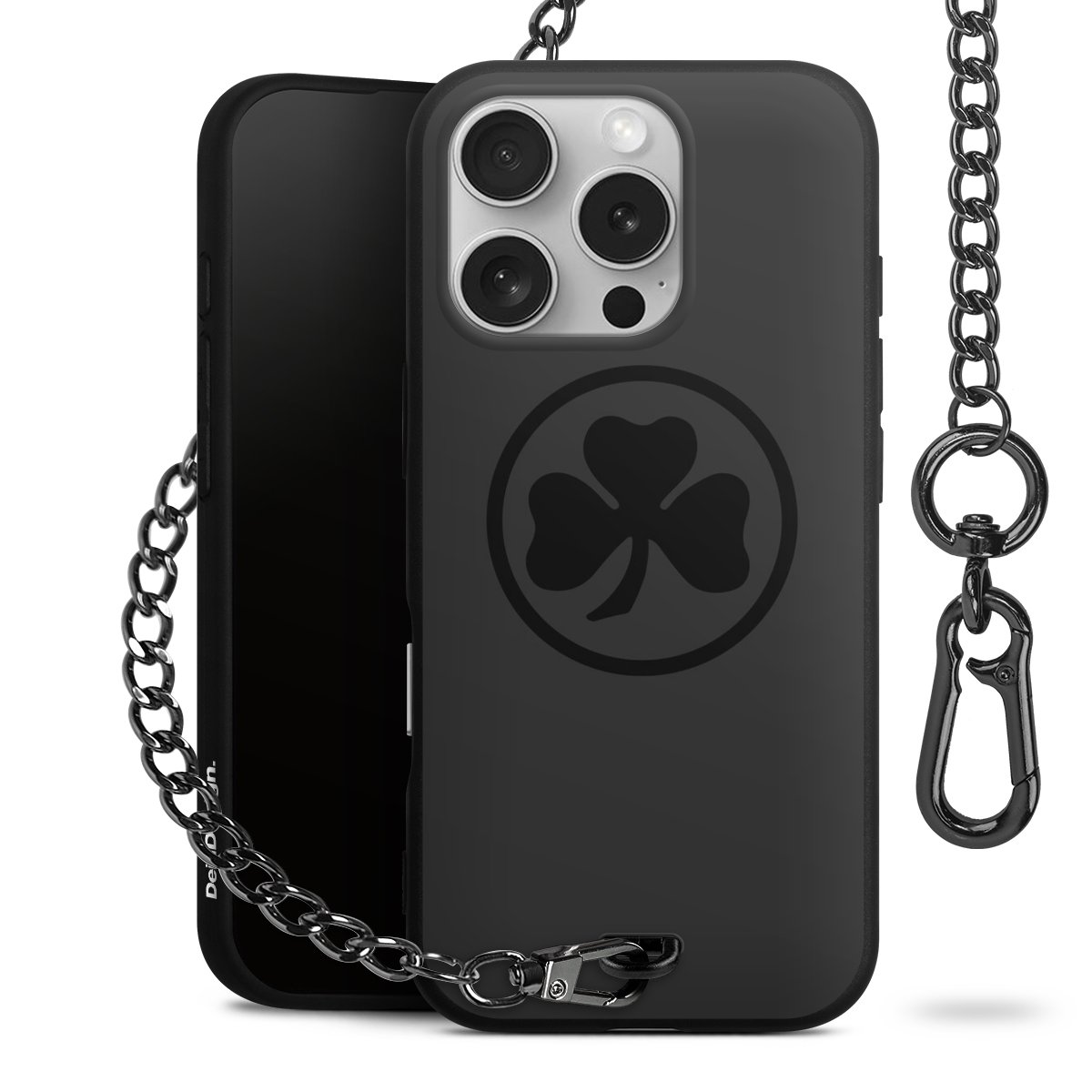 Die mattschwarze Silikon-Handyhülle besteht aus robustem TPU (thermoplastisches Polyurethan). Sie ist flexibel und schützt Dein Smartphone vor Stößen und Kratzern. Die Kette sowie der Karabinerhaken sind aus Metall in Gunmetal-Optik gefertigt. Für dieses Produkt kommen ausschließlich TÜV-geprüfte Materialien zum Einsatz.