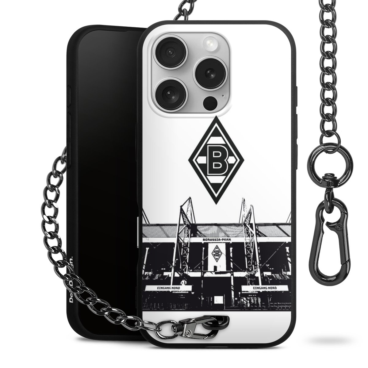 Die mattschwarze Silikon-Handyhülle besteht aus robustem TPU (thermoplastisches Polyurethan). Sie ist flexibel und schützt Dein Smartphone vor Stößen und Kratzern. Die Kette sowie der Karabinerhaken sind aus Metall in Gunmetal-Optik gefertigt. Für dieses Produkt kommen ausschließlich TÜV-geprüfte Materialien zum Einsatz.