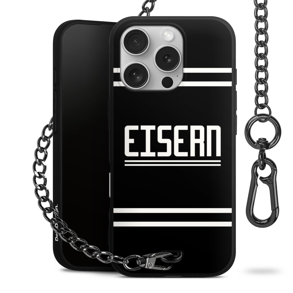 • Mattschwarze Handyhülle mit Metallkette