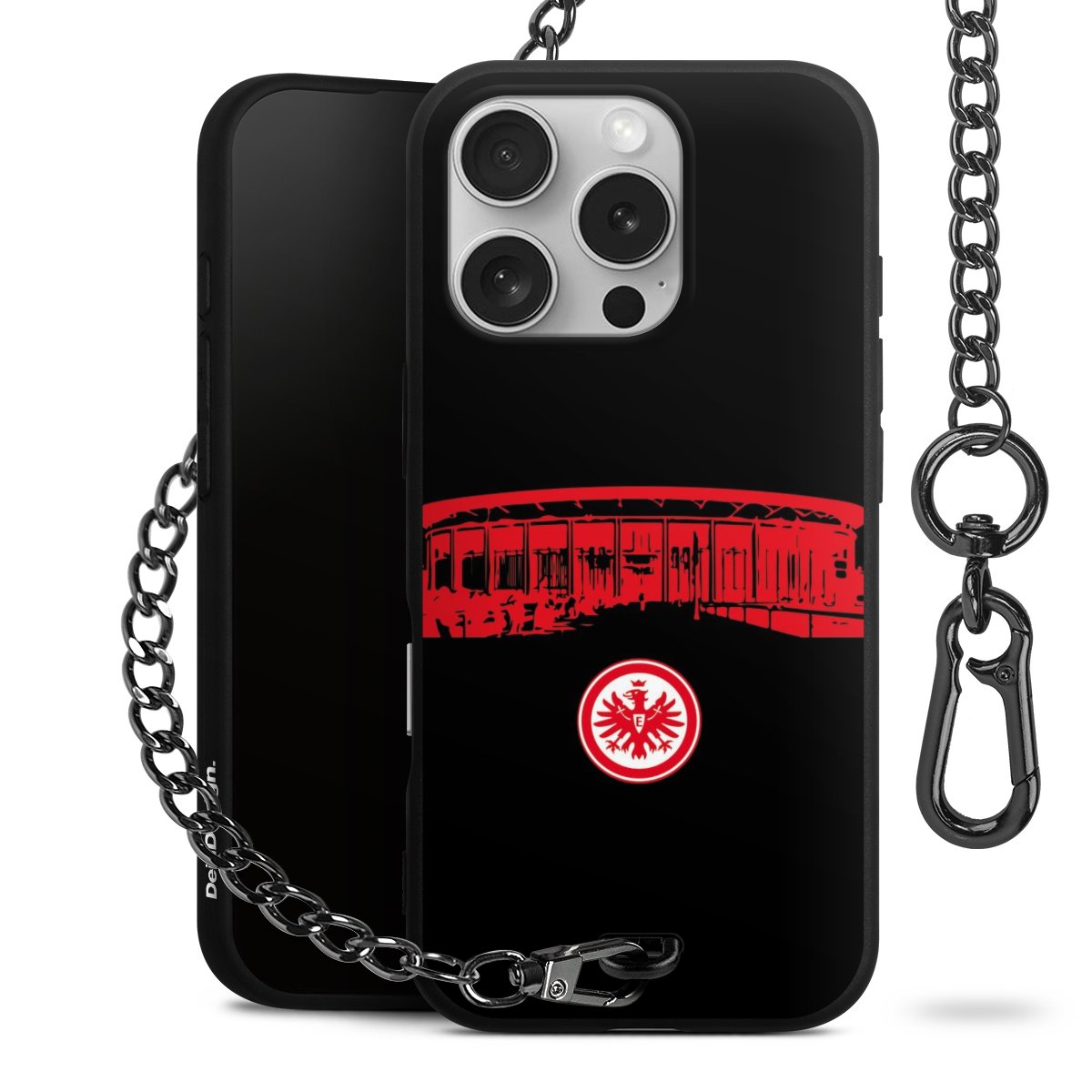 • Mattschwarze Handyhülle mit Metallkette