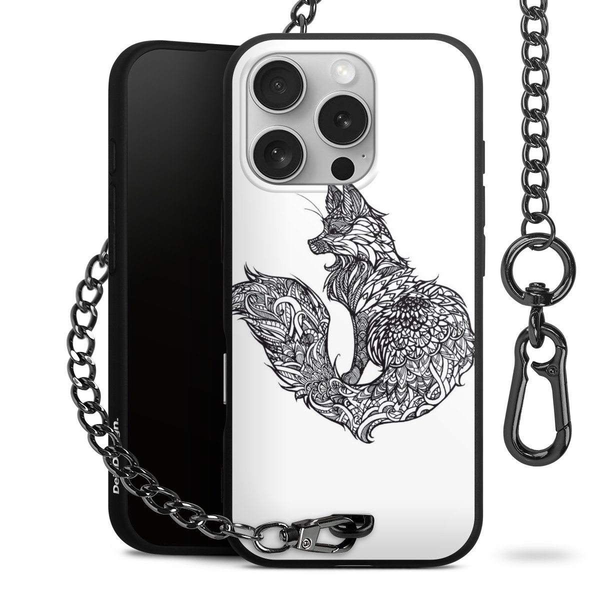 Die mattschwarze Silikon-Handyhülle besteht aus robustem TPU (thermoplastisches Polyurethan). Sie ist flexibel und schützt Dein Smartphone vor Stößen und Kratzern. Die Kette sowie der Karabinerhaken sind aus Metall in Gunmetal-Optik gefertigt. Für dieses Produkt kommen ausschließlich TÜV-geprüfte Materialien zum Einsatz.