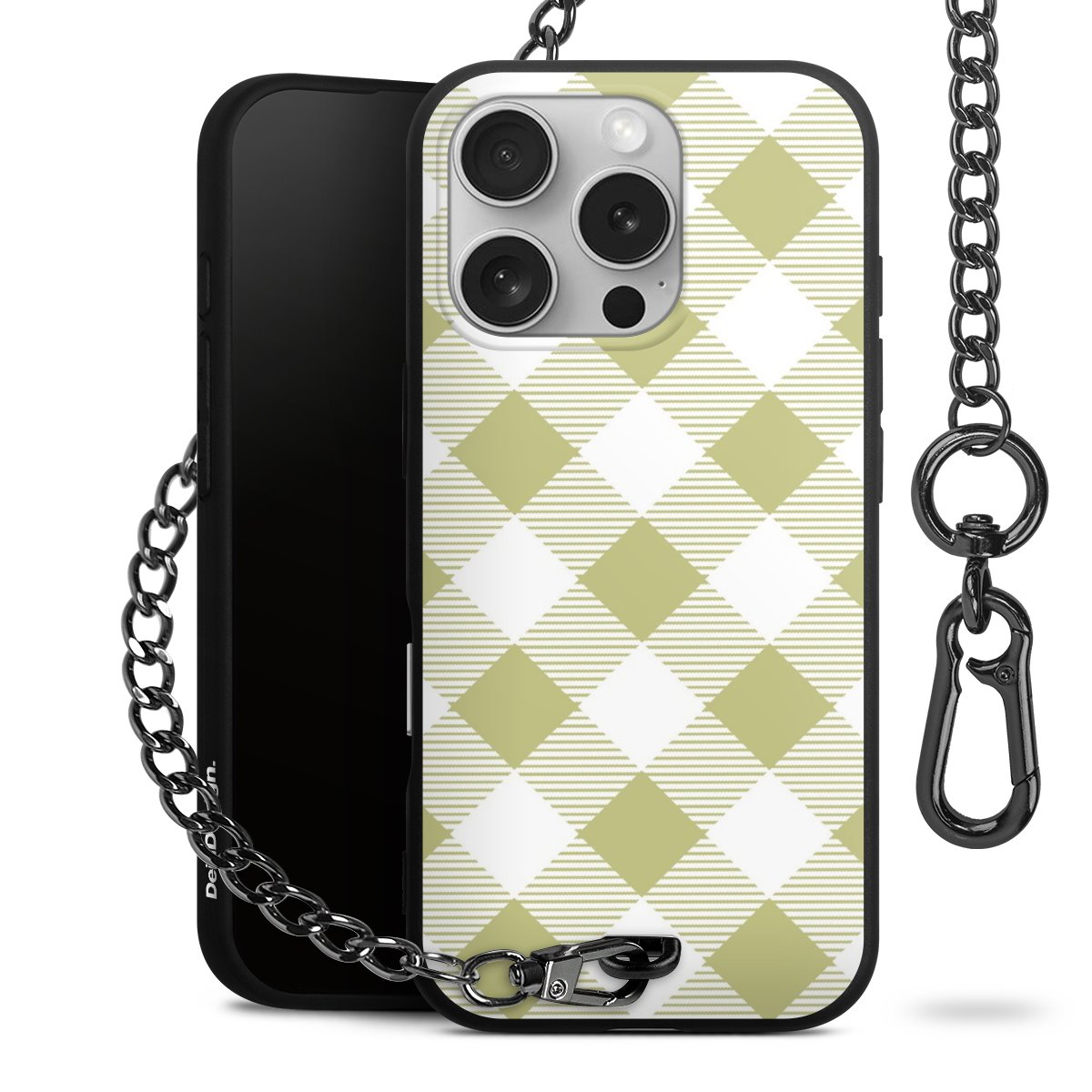 Die mattschwarze Silikon-Handyhülle besteht aus robustem TPU (thermoplastisches Polyurethan). Sie ist flexibel und schützt Dein Smartphone vor Stößen und Kratzern. Die Kette sowie der Karabinerhaken sind aus Metall in Gunmetal-Optik gefertigt. Für dieses Produkt kommen ausschließlich TÜV-geprüfte Materialien zum Einsatz.