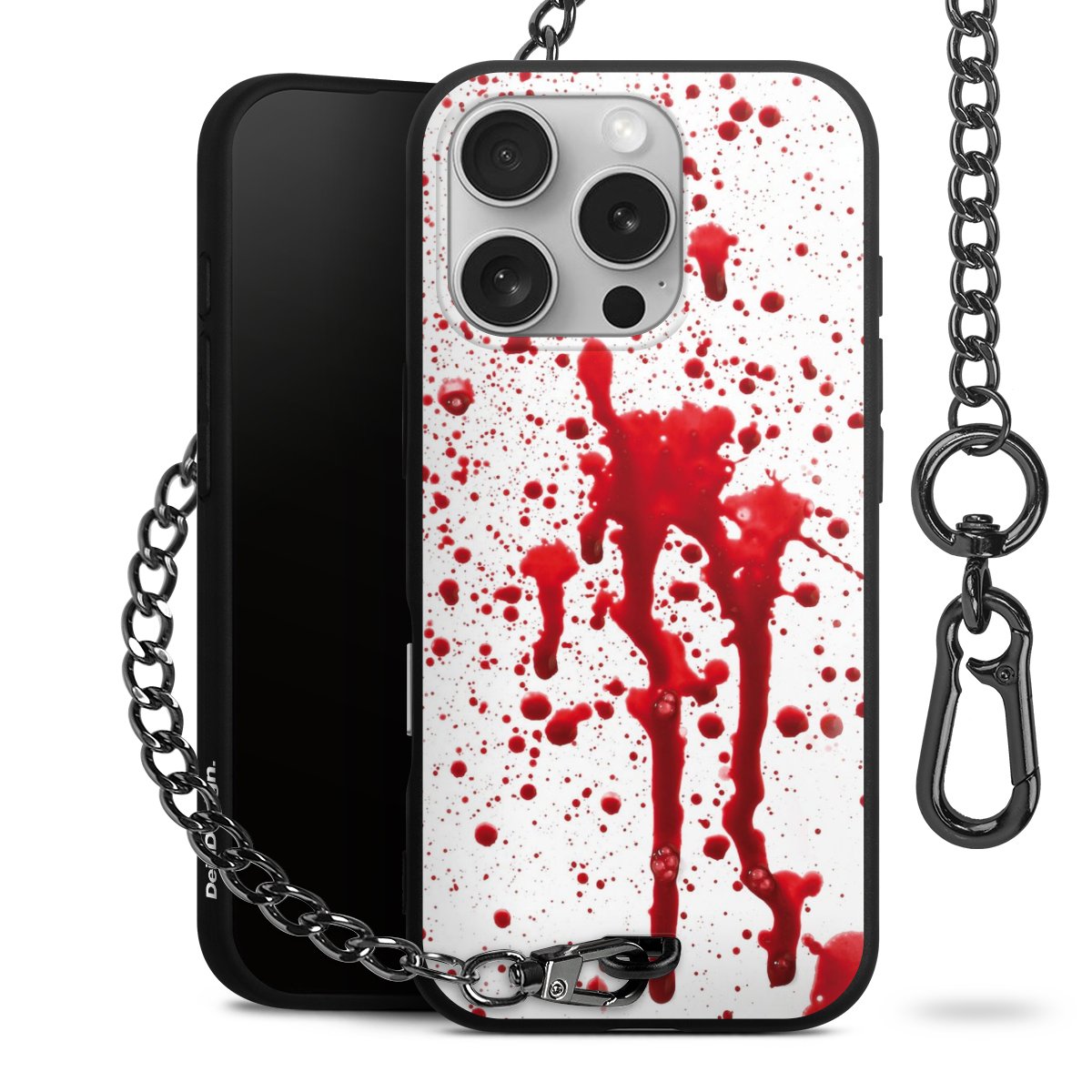 - Mattschwarze Handyhülle mit Metallkette