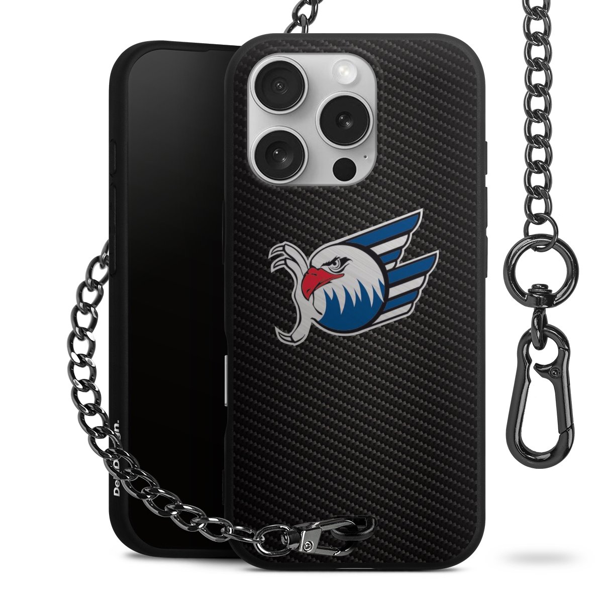 Die mattschwarze Silikon-Handyhülle besteht aus robustem TPU (thermoplastisches Polyurethan). Sie ist flexibel und schützt Dein Smartphone vor Stößen und Kratzern. Die Kette sowie der Karabinerhaken sind aus Metall in Gunmetal-Optik gefertigt. Für dieses Produkt kommen ausschließlich TÜV-geprüfte Materialien zum Einsatz.