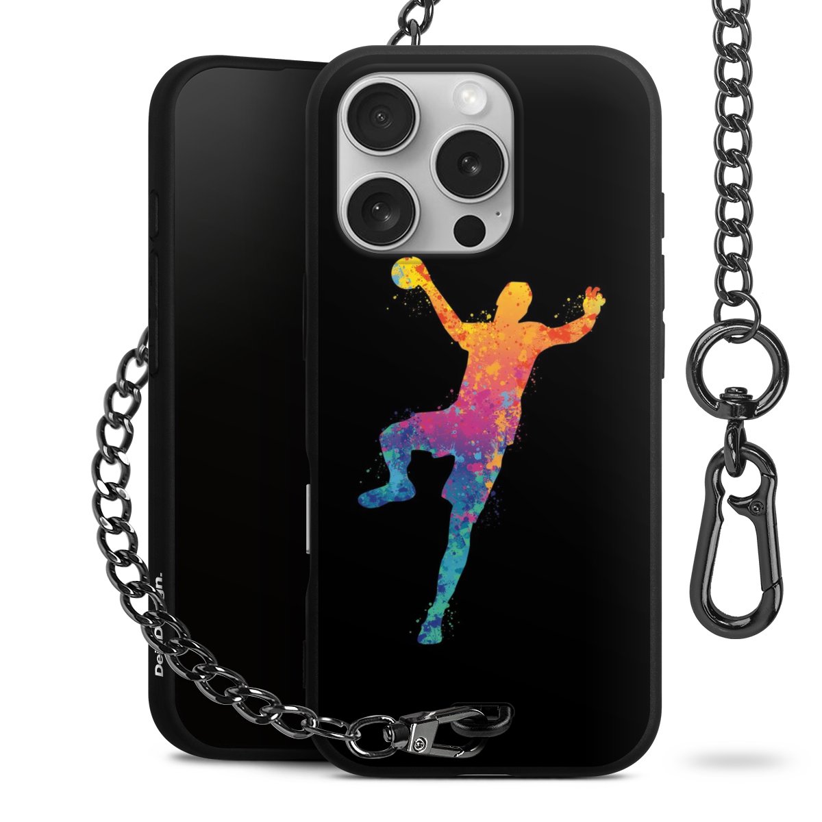 Die mattschwarze Silikon-Handyhülle besteht aus robustem TPU (thermoplastisches Polyurethan). Sie ist flexibel und schützt Dein Smartphone vor Stößen und Kratzern. Die Kette sowie der Karabinerhaken sind aus Metall in Gunmetal-Optik gefertigt. Für dieses Produkt kommen ausschließlich TÜV-geprüfte Materialien zum Einsatz.