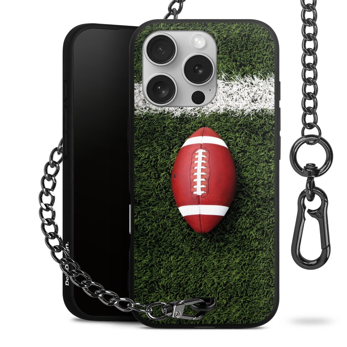 - Mattschwarze Handyhülle mit Metallkette