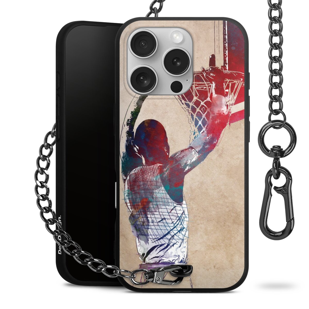 Die mattschwarze Silikon-Handyhülle besteht aus robustem TPU (thermoplastisches Polyurethan). Sie ist flexibel und schützt Dein Smartphone vor Stößen und Kratzern. Die Kette sowie der Karabinerhaken sind aus Metall in Gunmetal-Optik gefertigt. Für dieses Produkt kommen ausschließlich TÜV-geprüfte Materialien zum Einsatz.