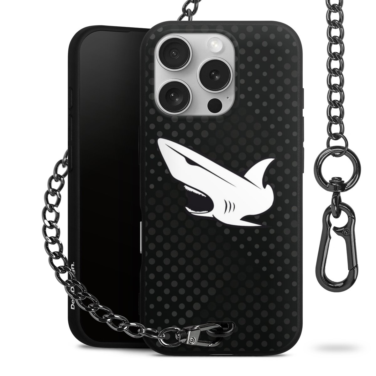 Die mattschwarze Silikon-Handyhülle besteht aus robustem TPU (thermoplastisches Polyurethan). Sie ist flexibel und schützt Dein Smartphone vor Stößen und Kratzern. Die Kette sowie der Karabinerhaken sind aus Metall in Gunmetal-Optik gefertigt. Für dieses Produkt kommen ausschließlich TÜV-geprüfte Materialien zum Einsatz.
