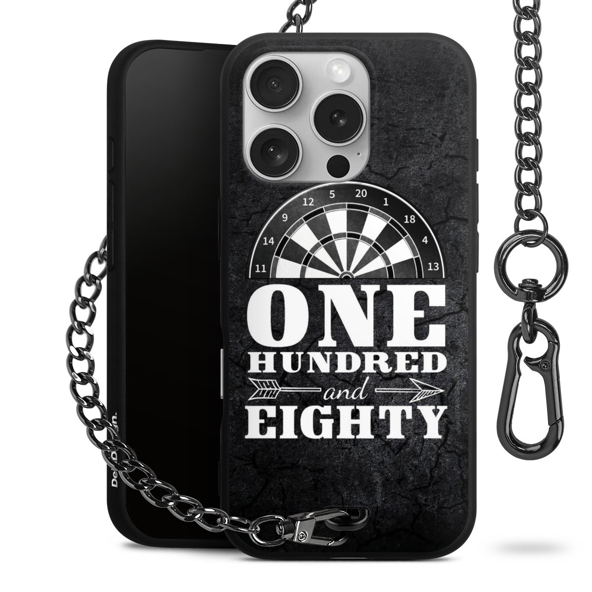 - Mattschwarze Handyhülle mit Metallkette