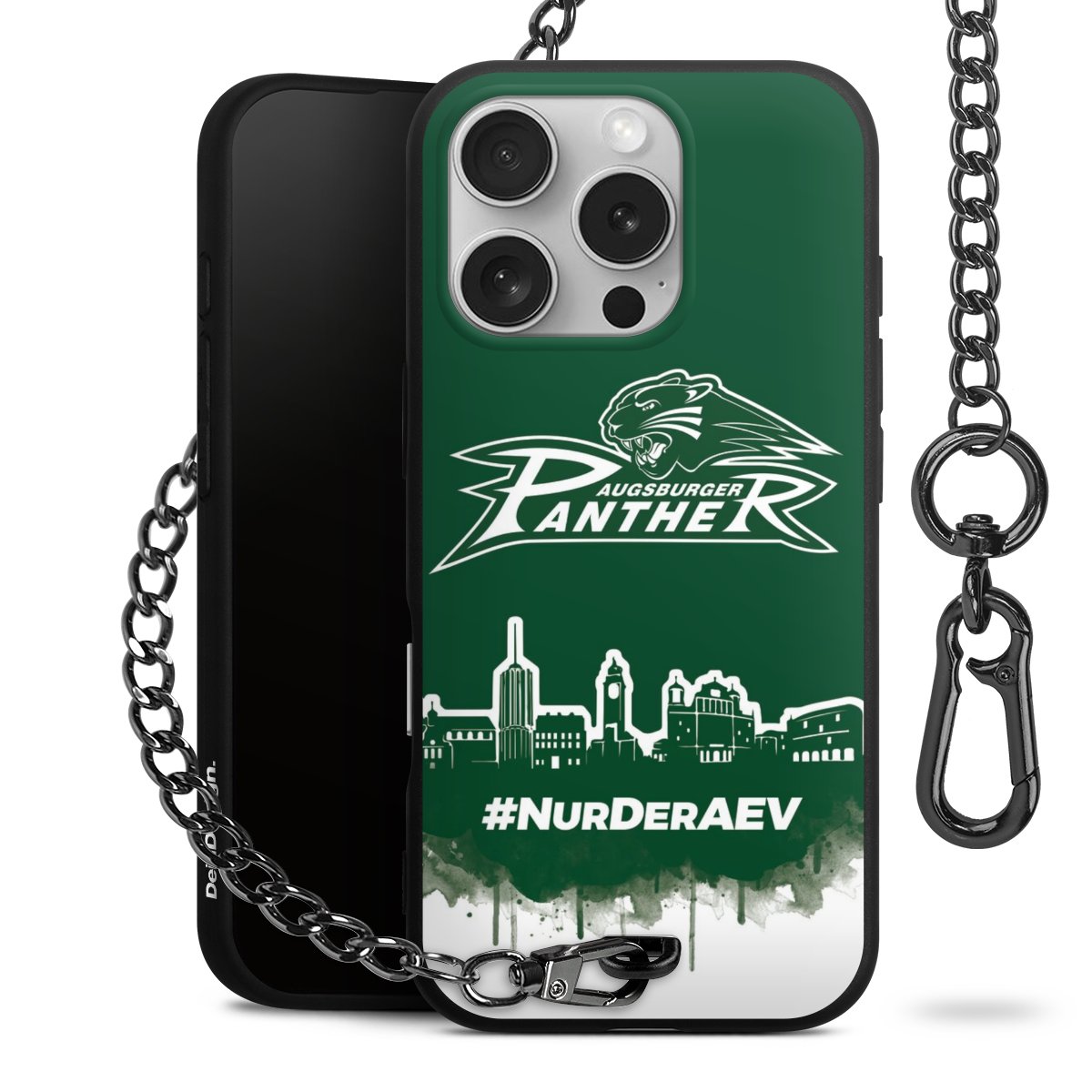 Die mattschwarze Silikon-Handyhülle besteht aus robustem TPU (thermoplastisches Polyurethan). Sie ist flexibel und schützt Dein Smartphone vor Stößen und Kratzern. Die Kette sowie der Karabinerhaken sind aus Metall in Gunmetal-Optik gefertigt. Für dieses Produkt kommen ausschließlich TÜV-geprüfte Materialien zum Einsatz.