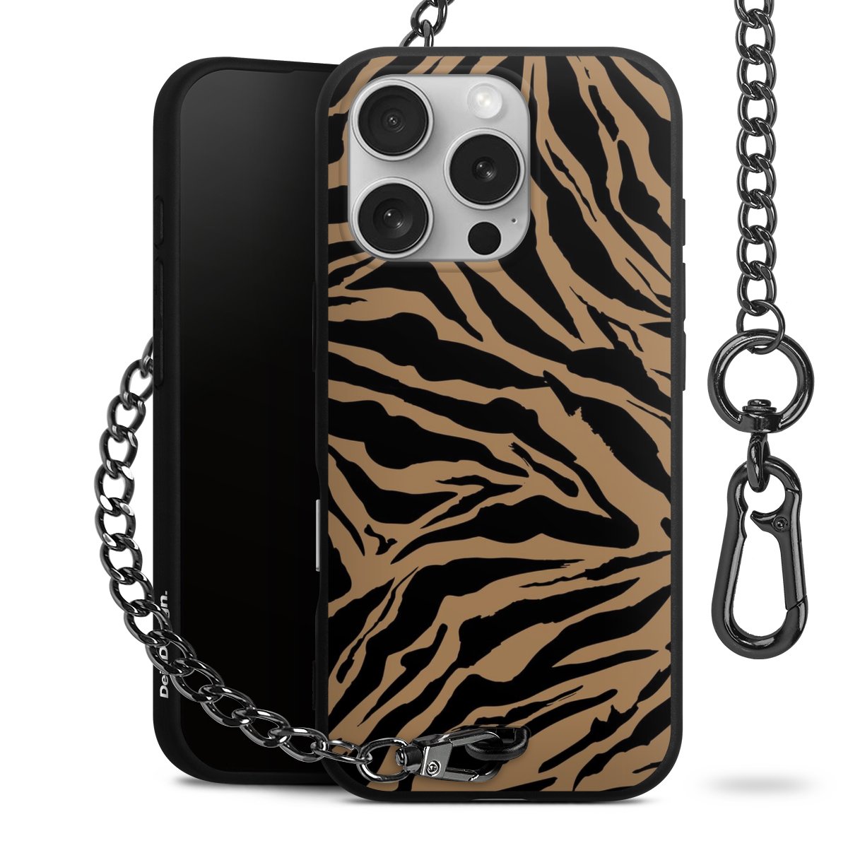 - Mattschwarze Handyhülle mit Metallkette