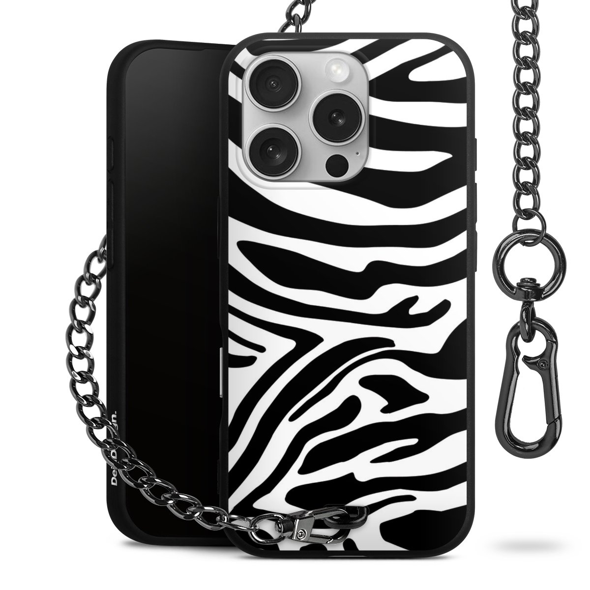 Die mattschwarze Silikon-Handyhülle besteht aus robustem TPU (thermoplastisches Polyurethan). Sie ist flexibel und schützt Dein Smartphone vor Stößen und Kratzern. Die Kette sowie der Karabinerhaken sind aus Metall in Gunmetal-Optik gefertigt. Für dieses Produkt kommen ausschließlich TÜV-geprüfte Materialien zum Einsatz.