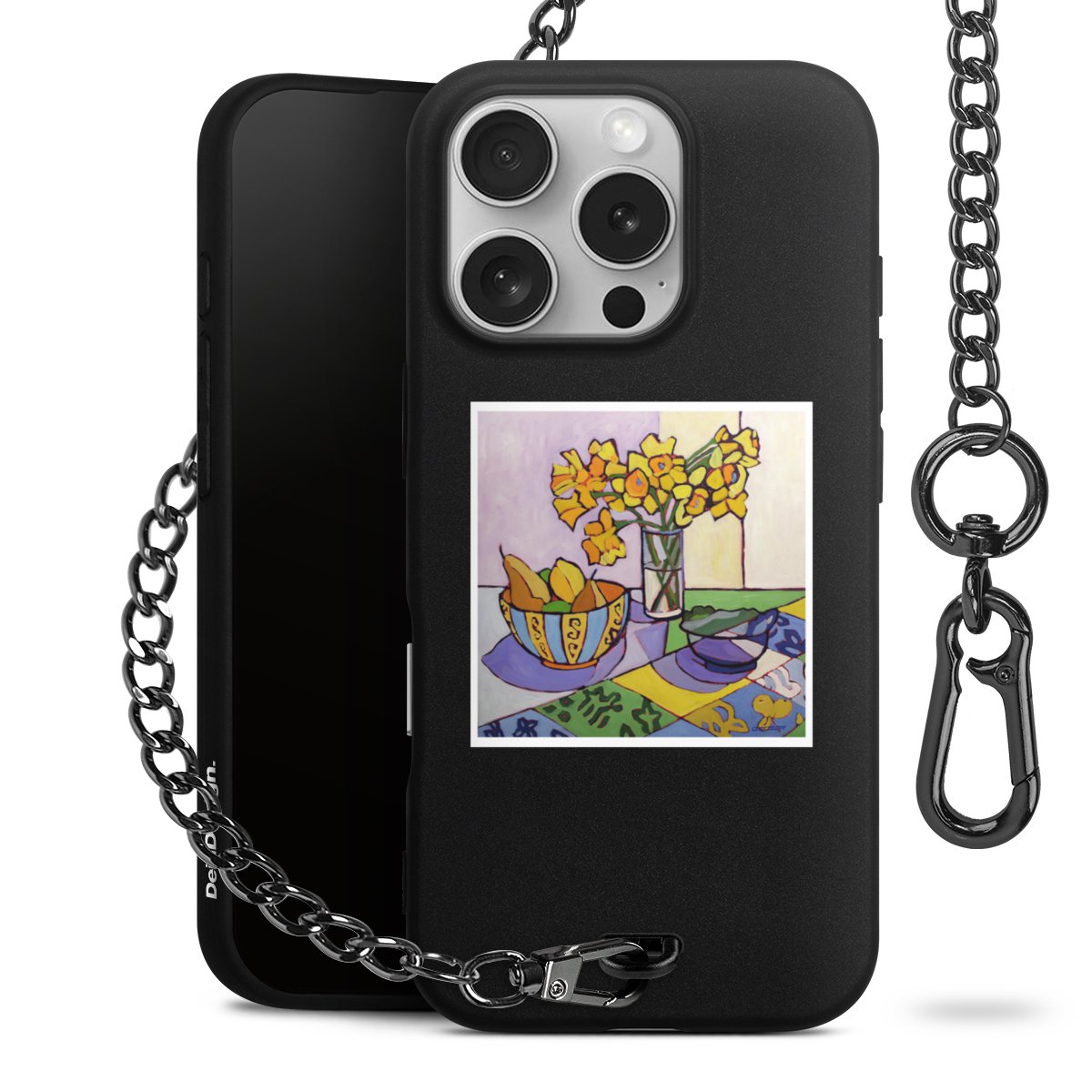 - Mattschwarze Handyhülle mit Metallkette