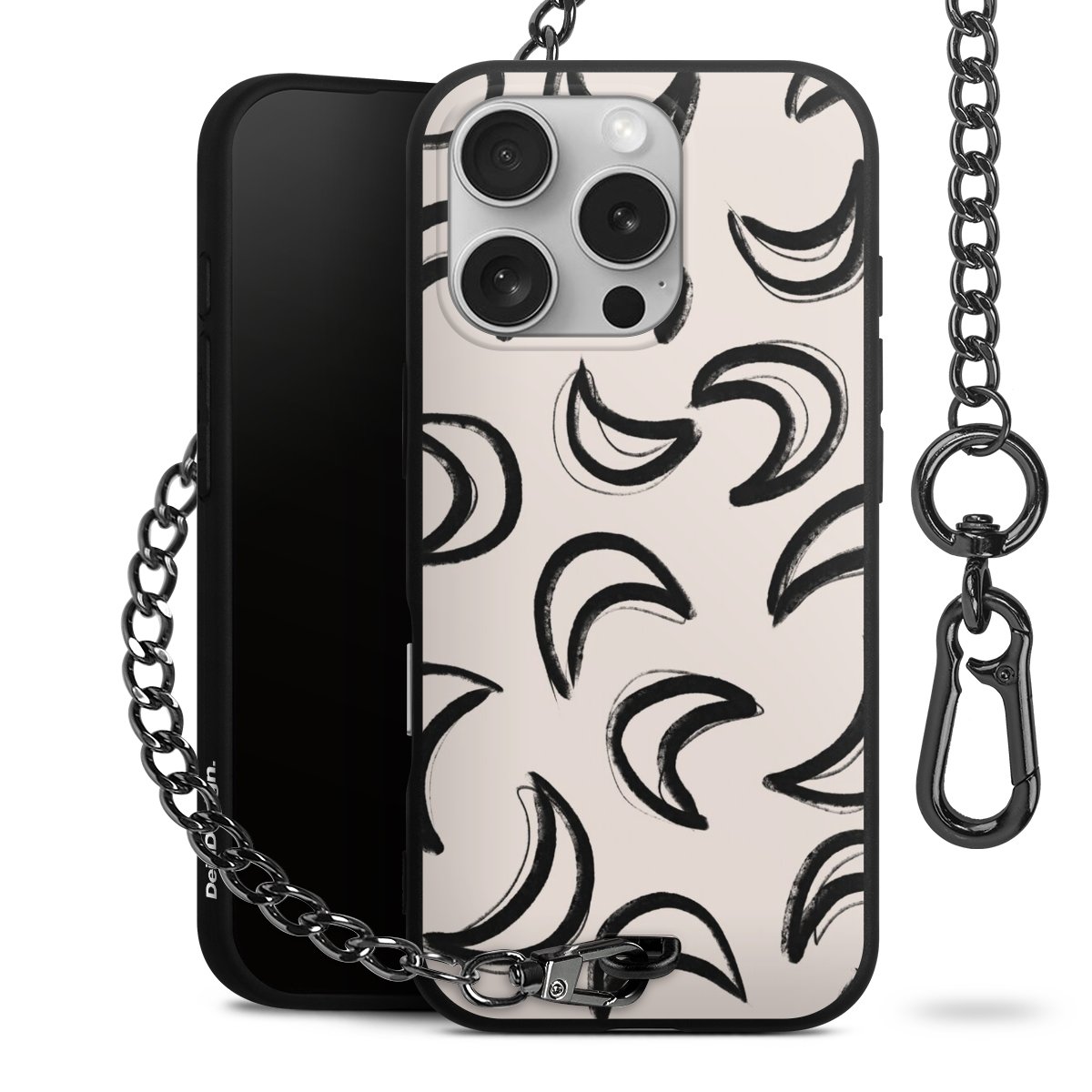 • Mattschwarze Handyhülle mit Metallkette
