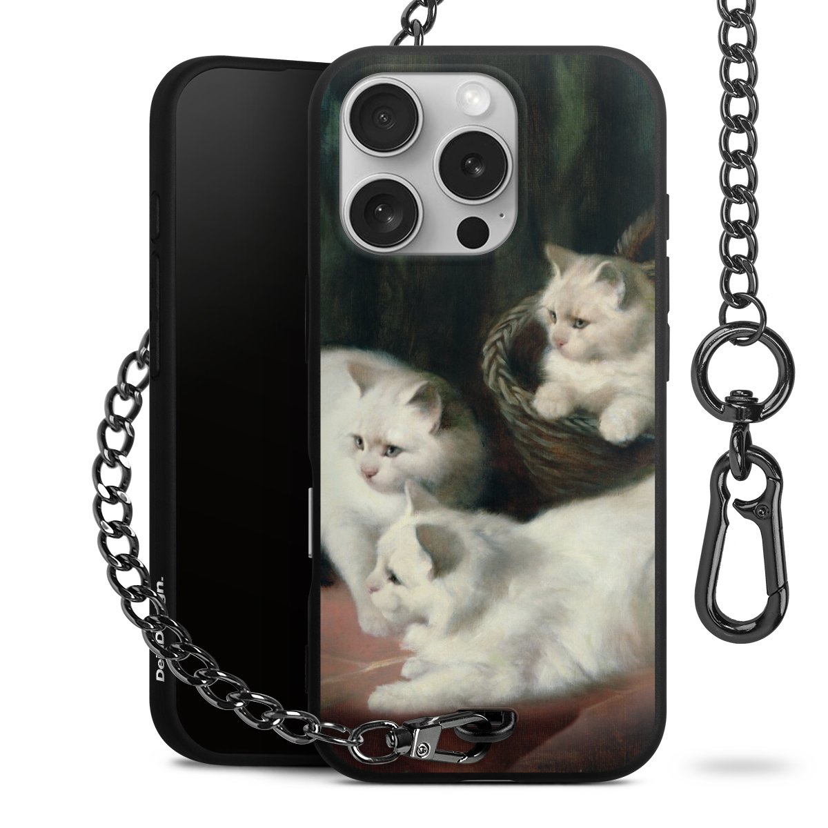 Die mattschwarze Silikon-Handyhülle besteht aus robustem TPU (thermoplastisches Polyurethan). Sie ist flexibel und schützt Dein Smartphone vor Stößen und Kratzern. Die Kette sowie der Karabinerhaken sind aus Metall in Gunmetal-Optik gefertigt. Für dieses Produkt kommen ausschließlich TÜV-geprüfte Materialien zum Einsatz.