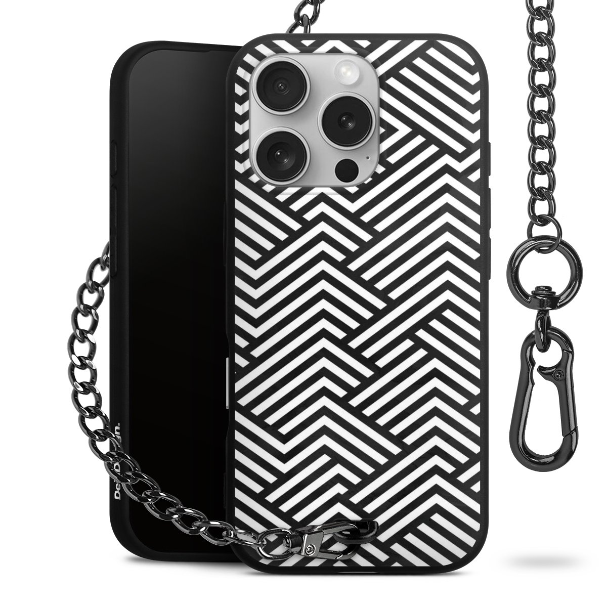 • Mattschwarze Handyhülle mit Metallkette