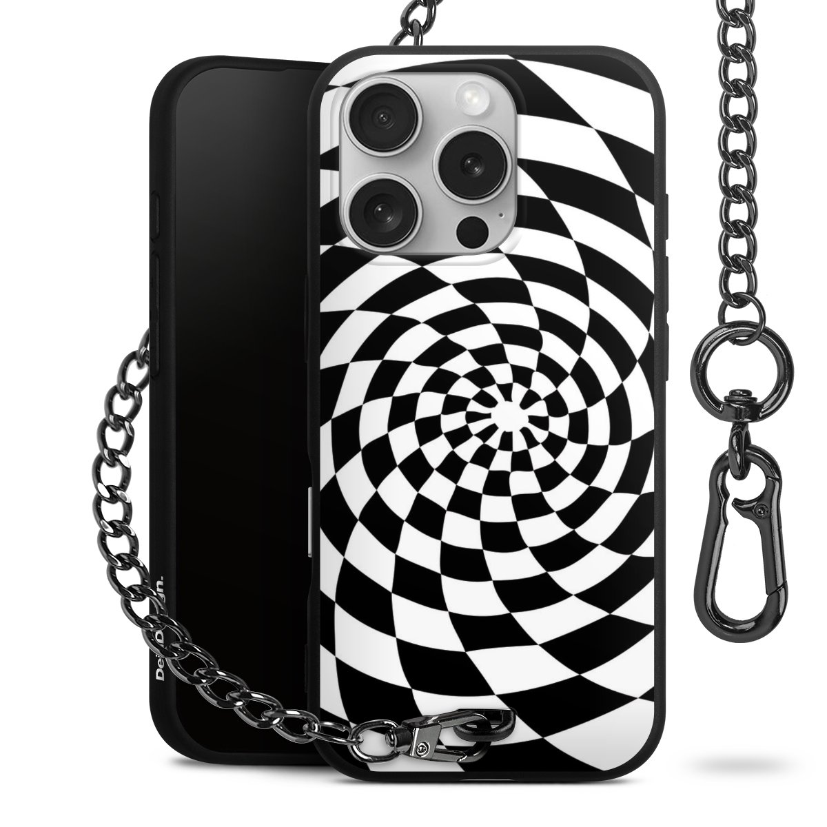 • Mattschwarze Handyhülle mit Metallkette