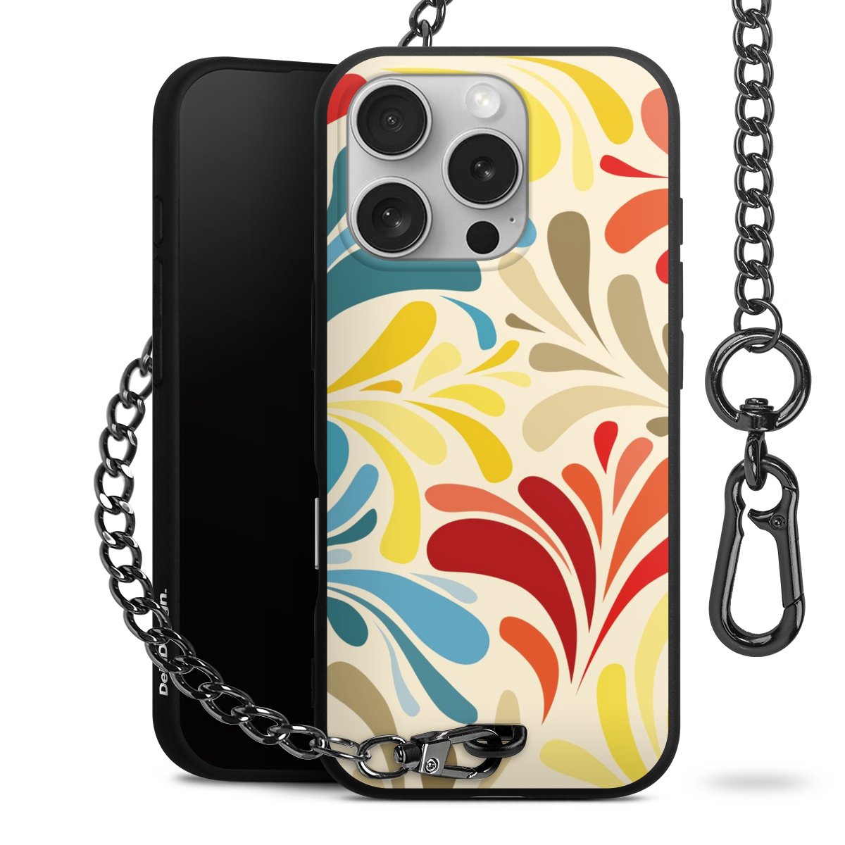 - Mattschwarze Handyhülle mit Metallkette