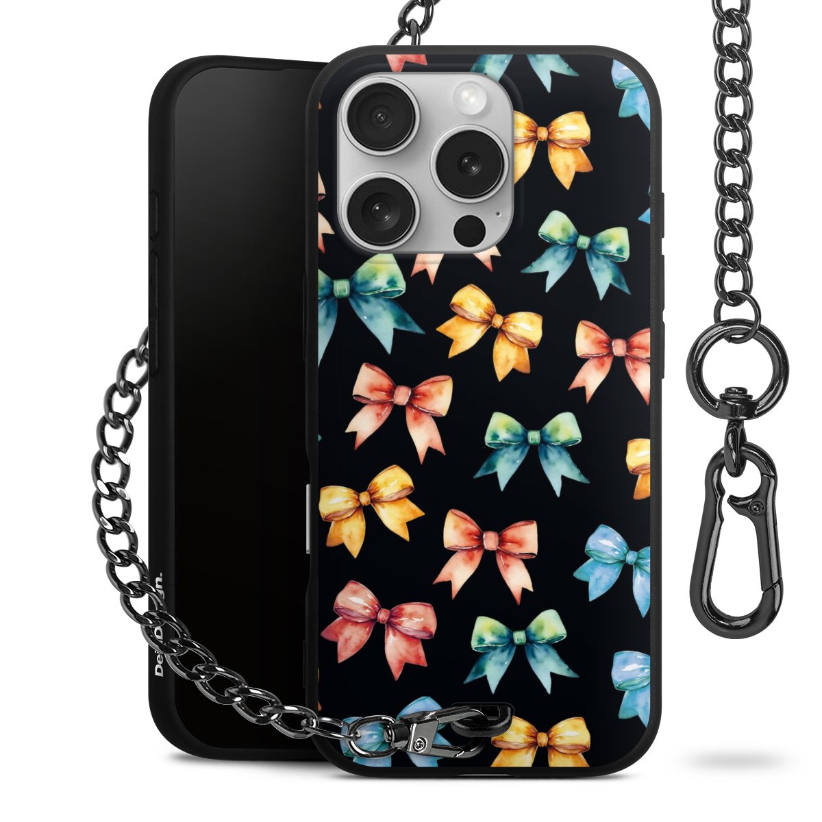 • Mattschwarze Handyhülle mit Metallkette