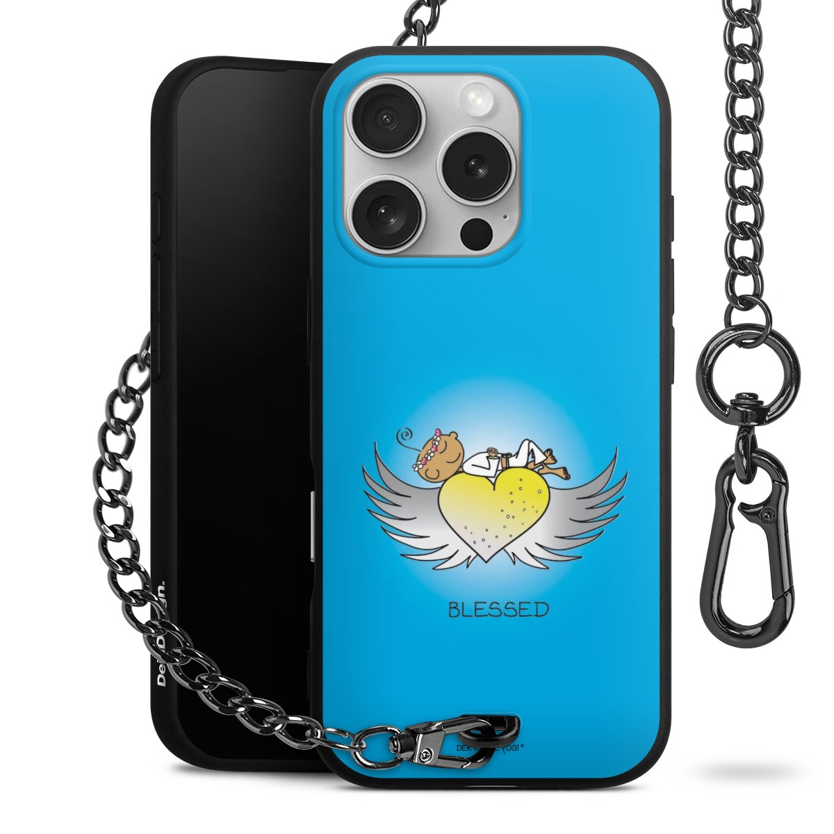 Die mattschwarze Silikon-Handyhülle besteht aus robustem TPU (thermoplastisches Polyurethan). Sie ist flexibel und schützt Dein Smartphone vor Stößen und Kratzern. Die Kette sowie der Karabinerhaken sind aus Metall in Gunmetal-Optik gefertigt. Für dieses Produkt kommen ausschließlich TÜV-geprüfte Materialien zum Einsatz.