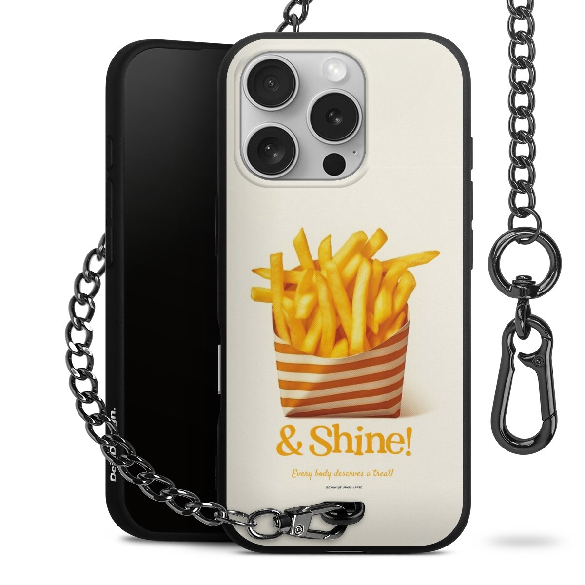 Die mattschwarze Silikon-Handyhülle besteht aus robustem TPU (thermoplastisches Polyurethan). Sie ist flexibel und schützt Dein Smartphone vor Stößen und Kratzern. Die Kette sowie der Karabinerhaken sind aus Metall in Gunmetal-Optik gefertigt. Für dieses Produkt kommen ausschließlich TÜV-geprüfte Materialien zum Einsatz.