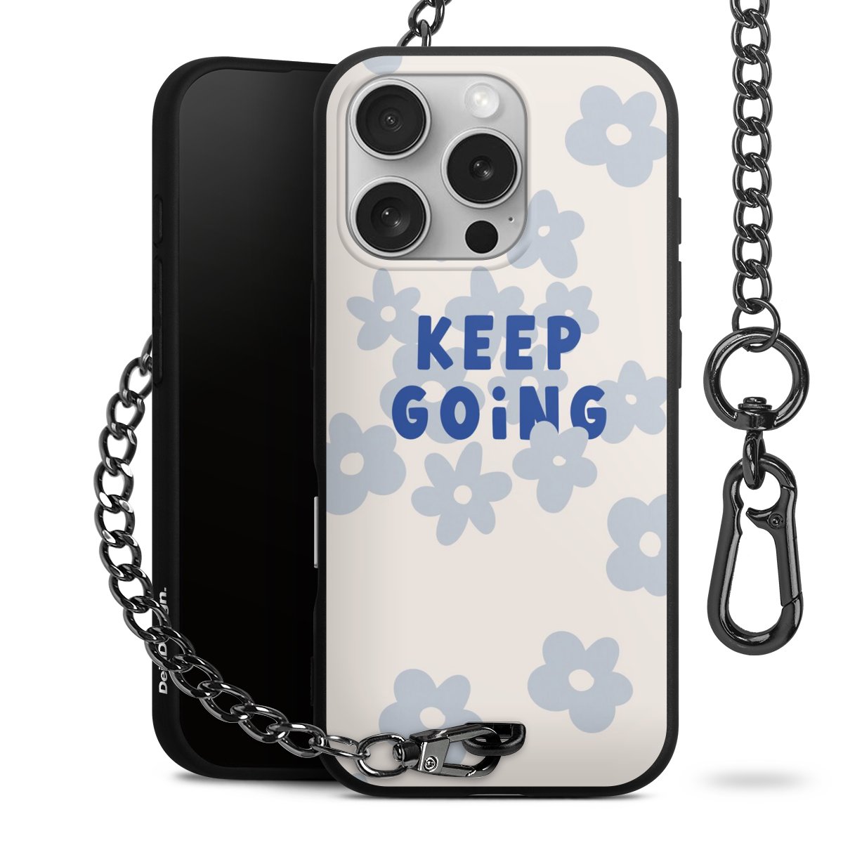 Die mattschwarze Silikon-Handyhülle besteht aus robustem TPU (thermoplastisches Polyurethan). Sie ist flexibel und schützt Dein Smartphone vor Stößen und Kratzern. Die Kette sowie der Karabinerhaken sind aus Metall in Gunmetal-Optik gefertigt. Für dieses Produkt kommen ausschließlich TÜV-geprüfte Materialien zum Einsatz.