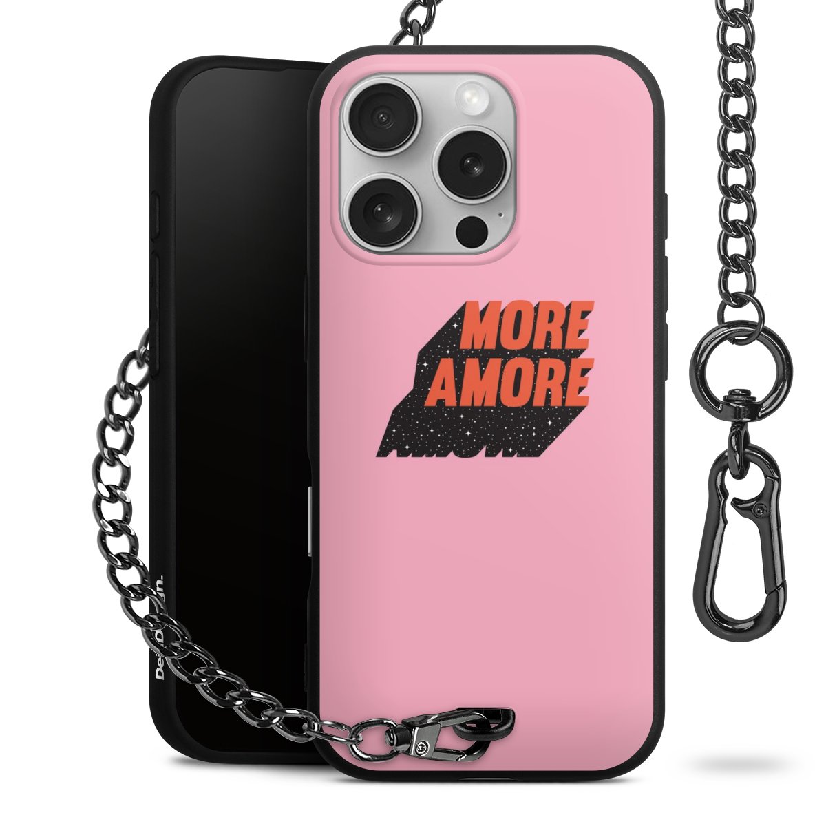 • Mattschwarze Handyhülle mit Metallkette
