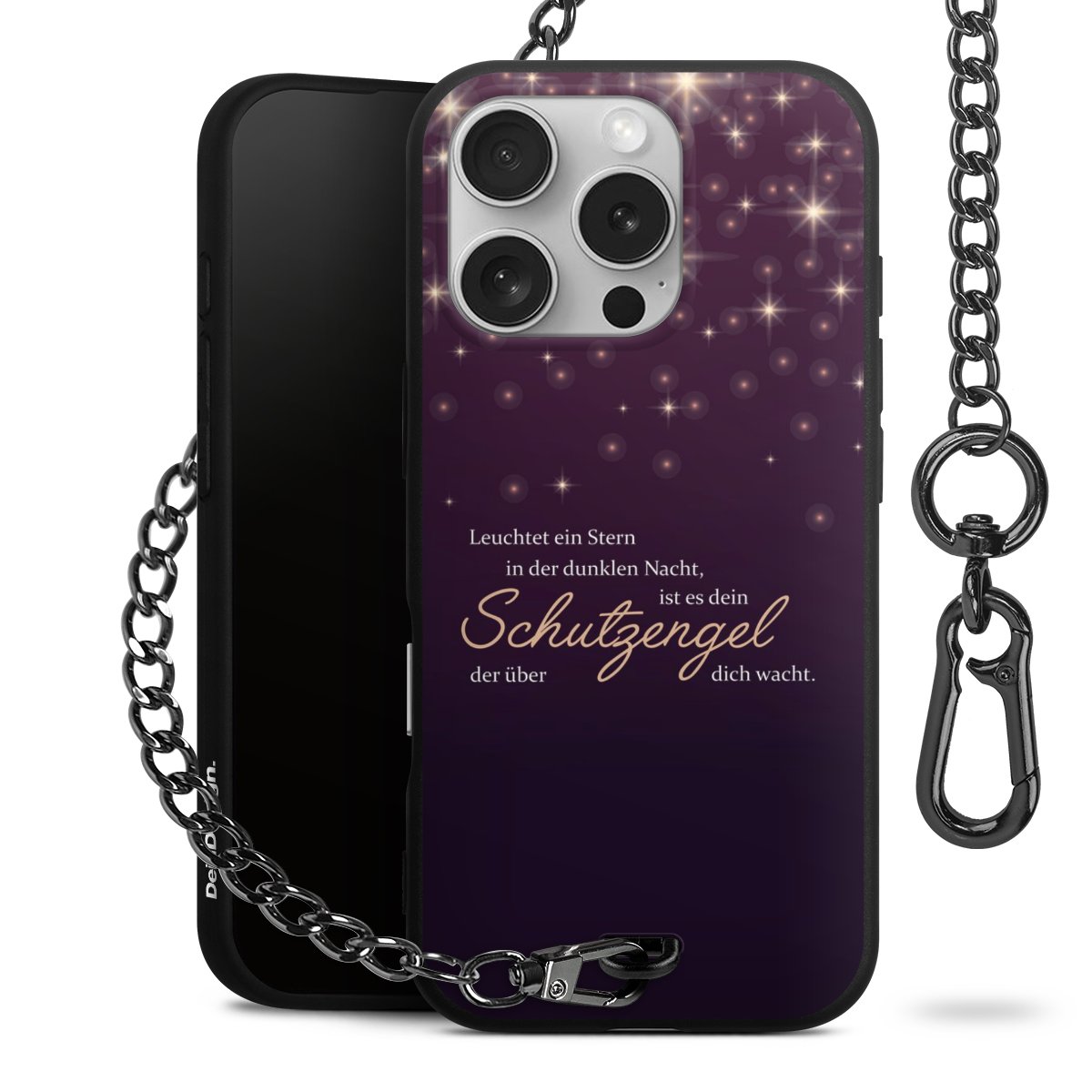 - Mattschwarze Handyhülle mit Metallkette