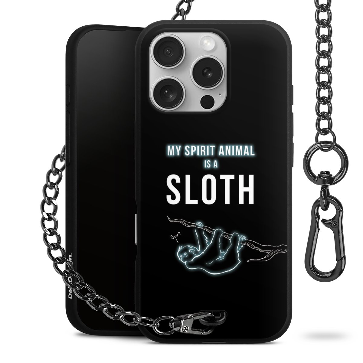 Die mattschwarze Silikon-Handyhülle besteht aus robustem TPU (thermoplastisches Polyurethan). Sie ist flexibel und schützt Dein Smartphone vor Stößen und Kratzern. Die Kette sowie der Karabinerhaken sind aus Metall in Gunmetal-Optik gefertigt. Für dieses Produkt kommen ausschließlich TÜV-geprüfte Materialien zum Einsatz.