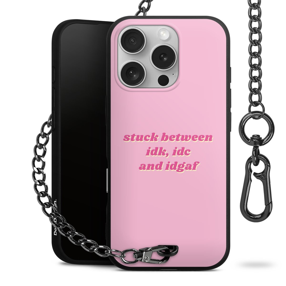 - Mattschwarze Handyhülle mit Metallkette