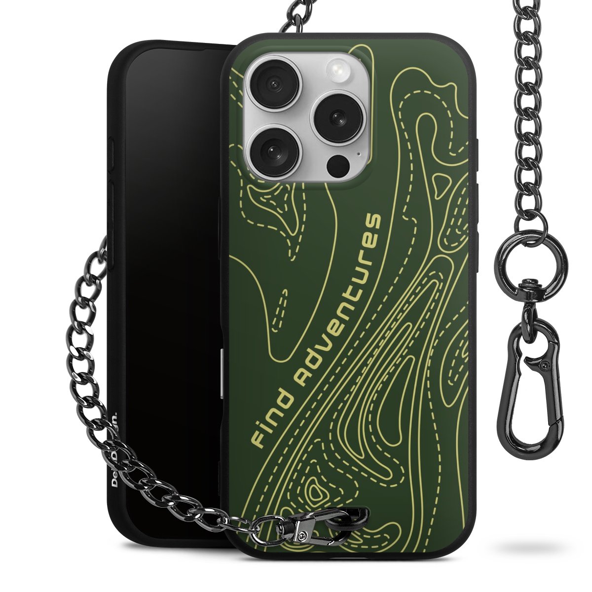 Die mattschwarze Silikon-Handyhülle besteht aus robustem TPU (thermoplastisches Polyurethan). Sie ist flexibel und schützt Dein Smartphone vor Stößen und Kratzern. Die Kette sowie der Karabinerhaken sind aus Metall in Gunmetal-Optik gefertigt. Für dieses Produkt kommen ausschließlich TÜV-geprüfte Materialien zum Einsatz.
