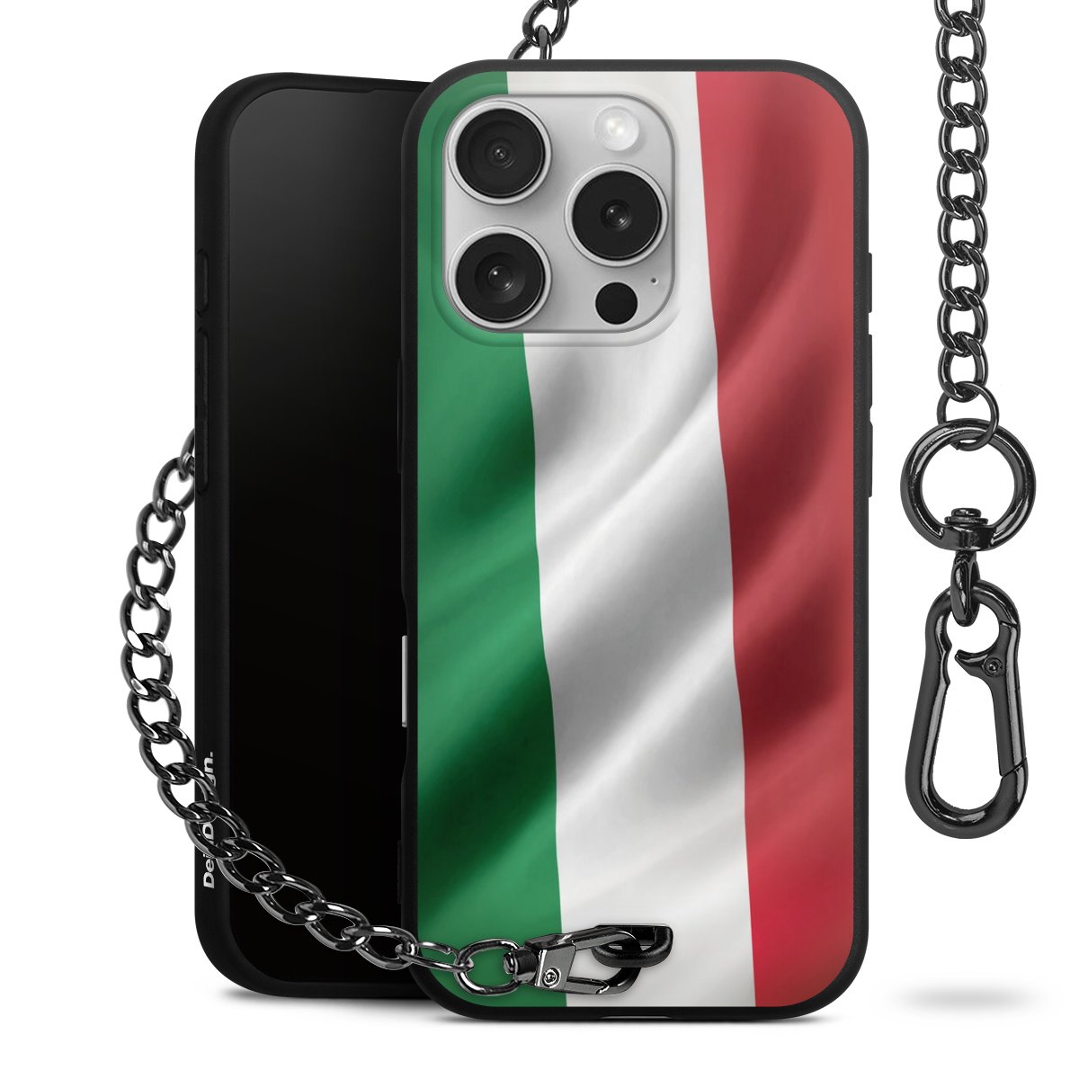 Die mattschwarze Silikon-Handyhülle besteht aus robustem TPU (thermoplastisches Polyurethan). Sie ist flexibel und schützt Dein Smartphone vor Stößen und Kratzern. Die Kette sowie der Karabinerhaken sind aus Metall in Gunmetal-Optik gefertigt. Für dieses Produkt kommen ausschließlich TÜV-geprüfte Materialien zum Einsatz.