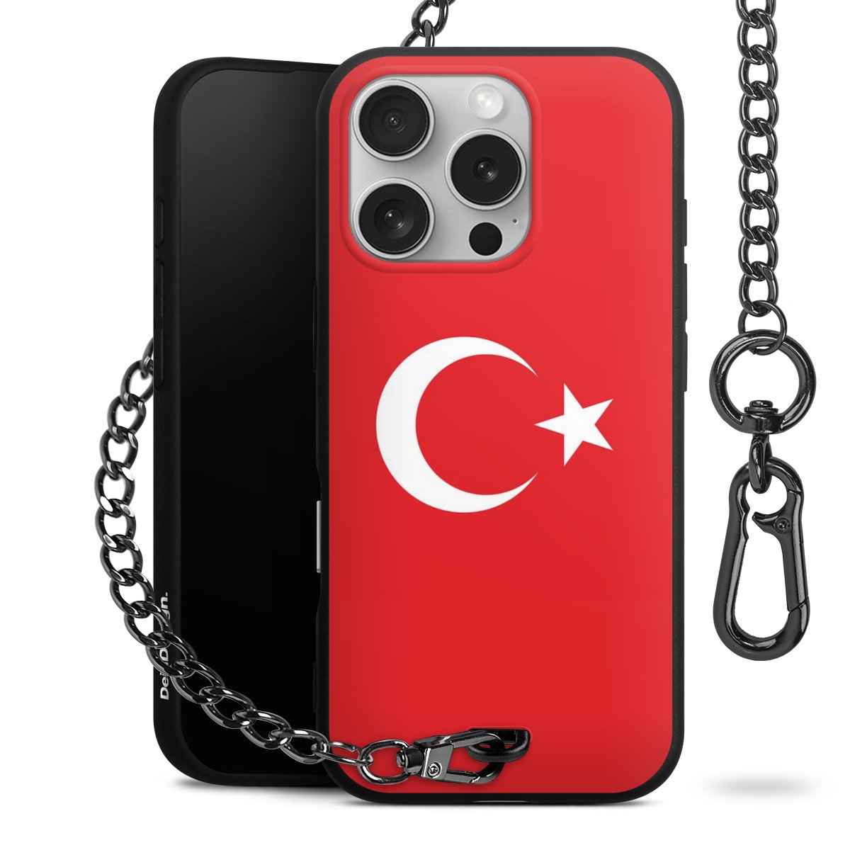 Die mattschwarze Silikon-Handyhülle besteht aus robustem TPU (thermoplastisches Polyurethan). Sie ist flexibel und schützt Dein Smartphone vor Stößen und Kratzern. Die Kette sowie der Karabinerhaken sind aus Metall in Gunmetal-Optik gefertigt. Für dieses Produkt kommen ausschließlich TÜV-geprüfte Materialien zum Einsatz.