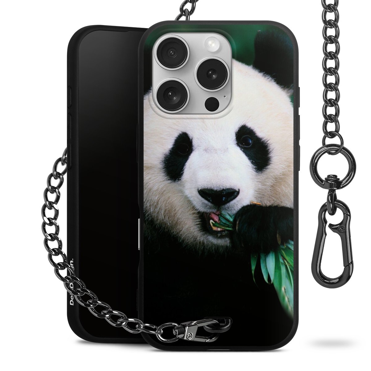 • Mattschwarze Handyhülle mit Metallkette