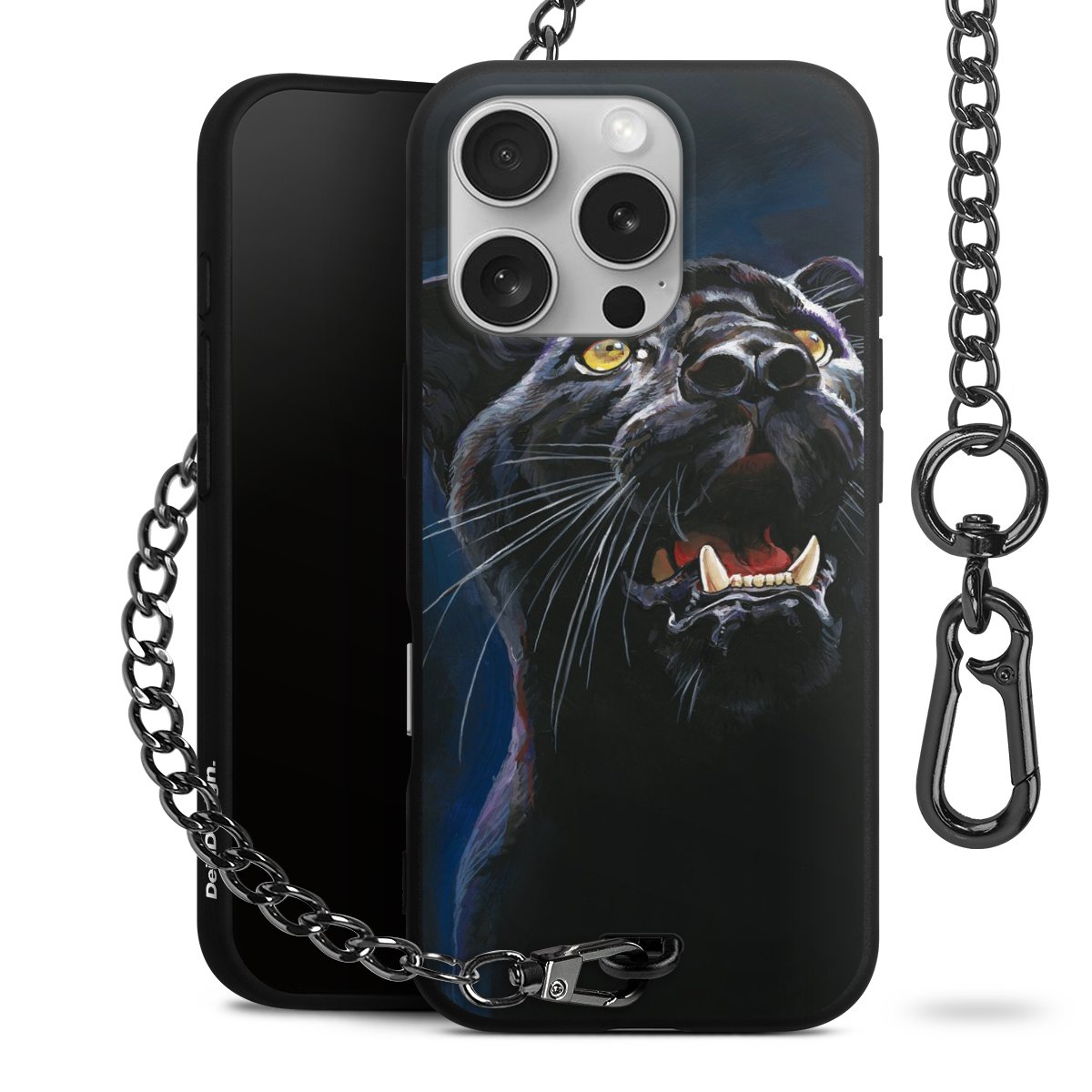 Die mattschwarze Silikon-Handyhülle besteht aus robustem TPU (thermoplastisches Polyurethan). Sie ist flexibel und schützt Dein Smartphone vor Stößen und Kratzern. Die Kette sowie der Karabinerhaken sind aus Metall in Gunmetal-Optik gefertigt. Für dieses Produkt kommen ausschließlich TÜV-geprüfte Materialien zum Einsatz.