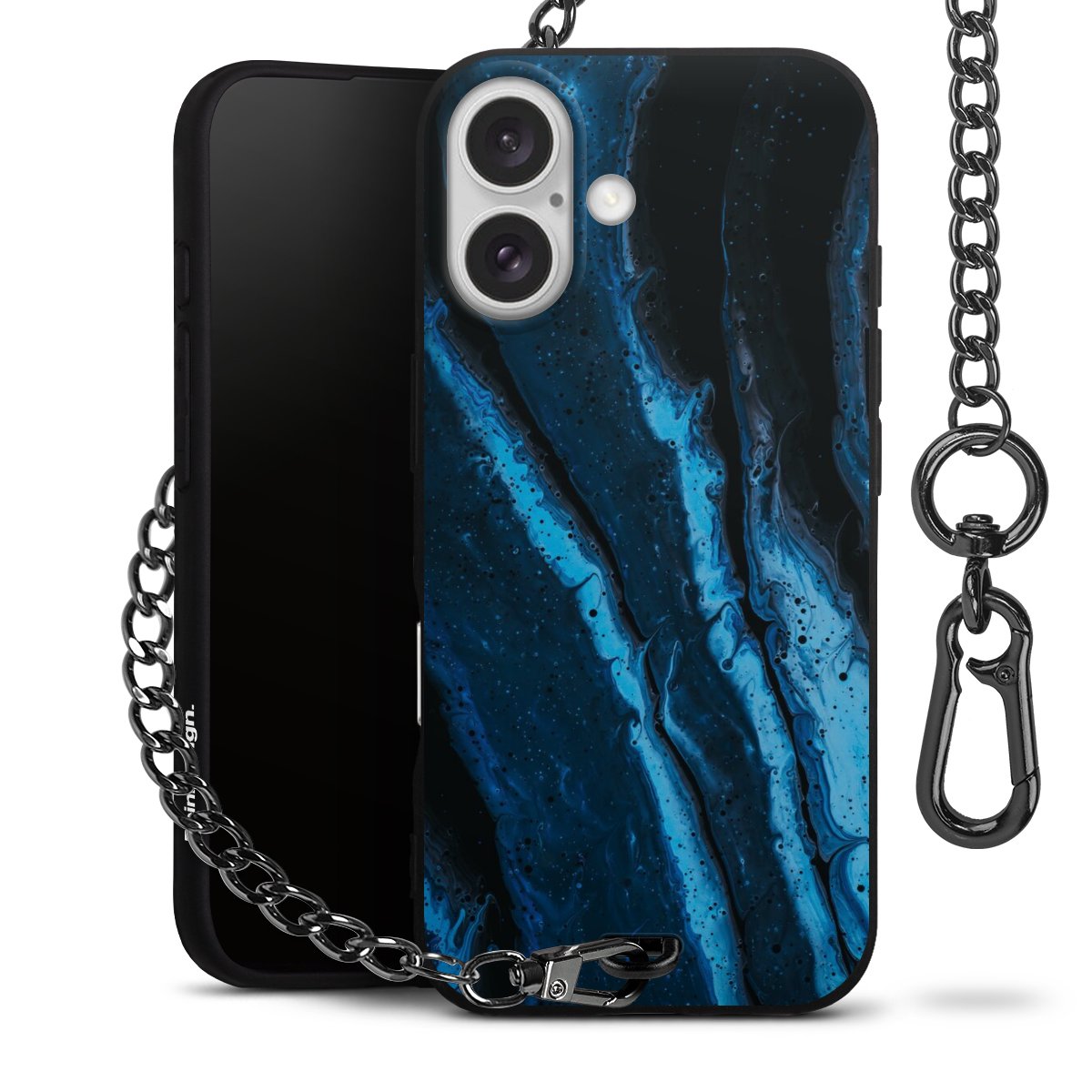 - Mattschwarze Handyhülle mit Metallkette