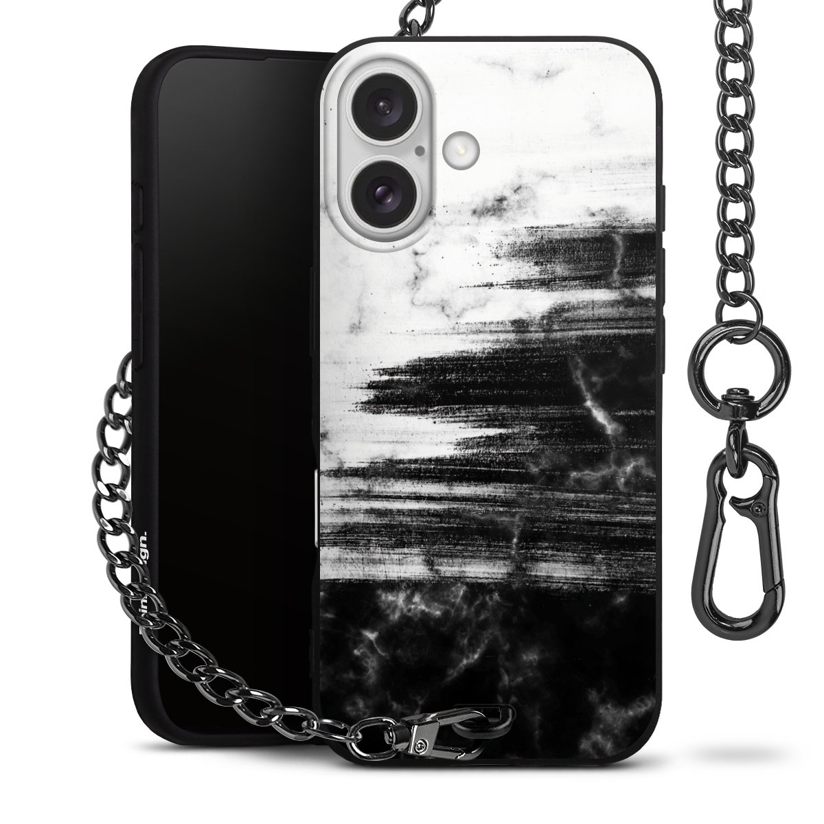 • Mattschwarze Handyhülle mit Metallkette