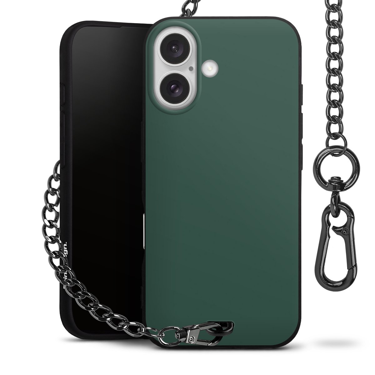 - Mattschwarze Handyhülle mit Metallkette