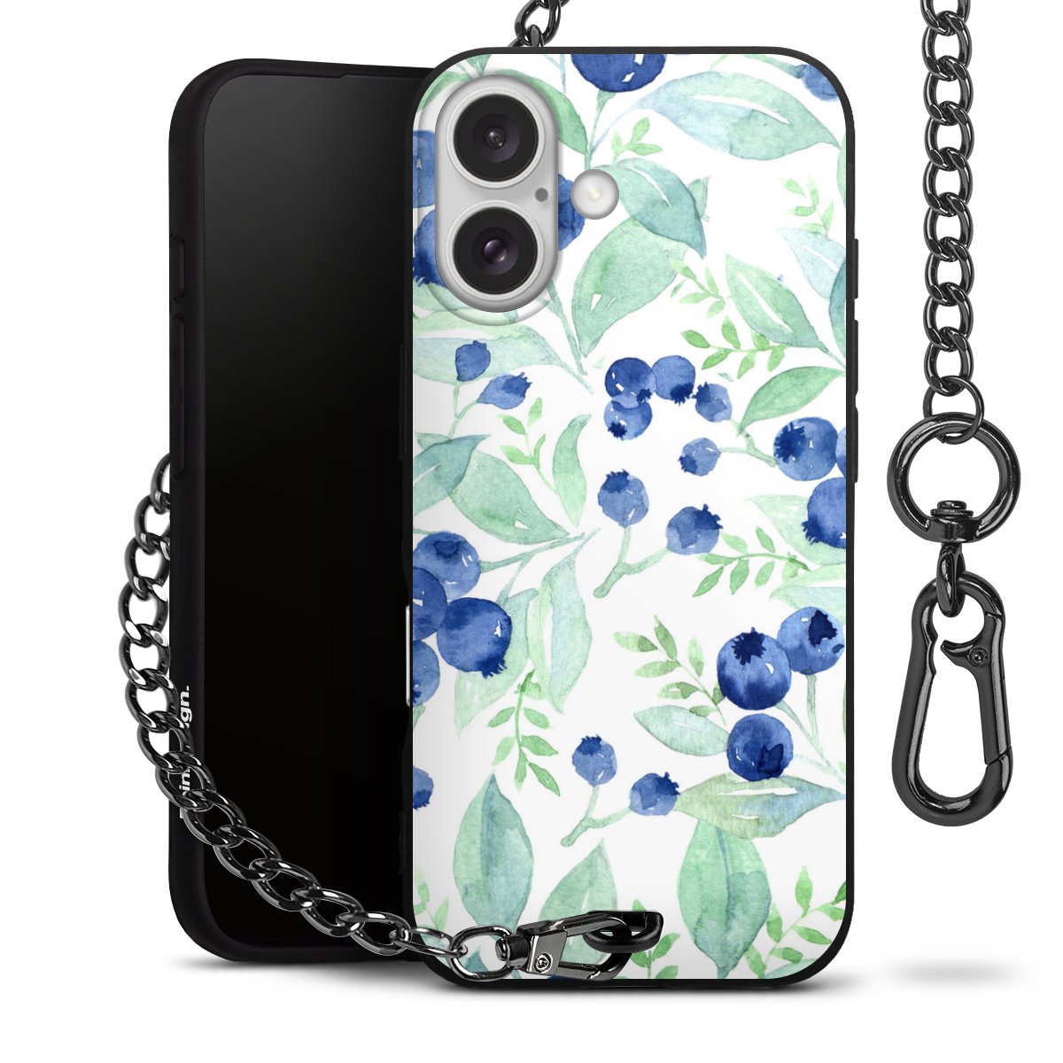 • Mattschwarze Handyhülle mit Metallkette