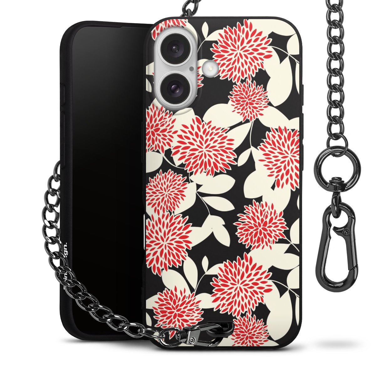 - Mattschwarze Handyhülle mit Metallkette