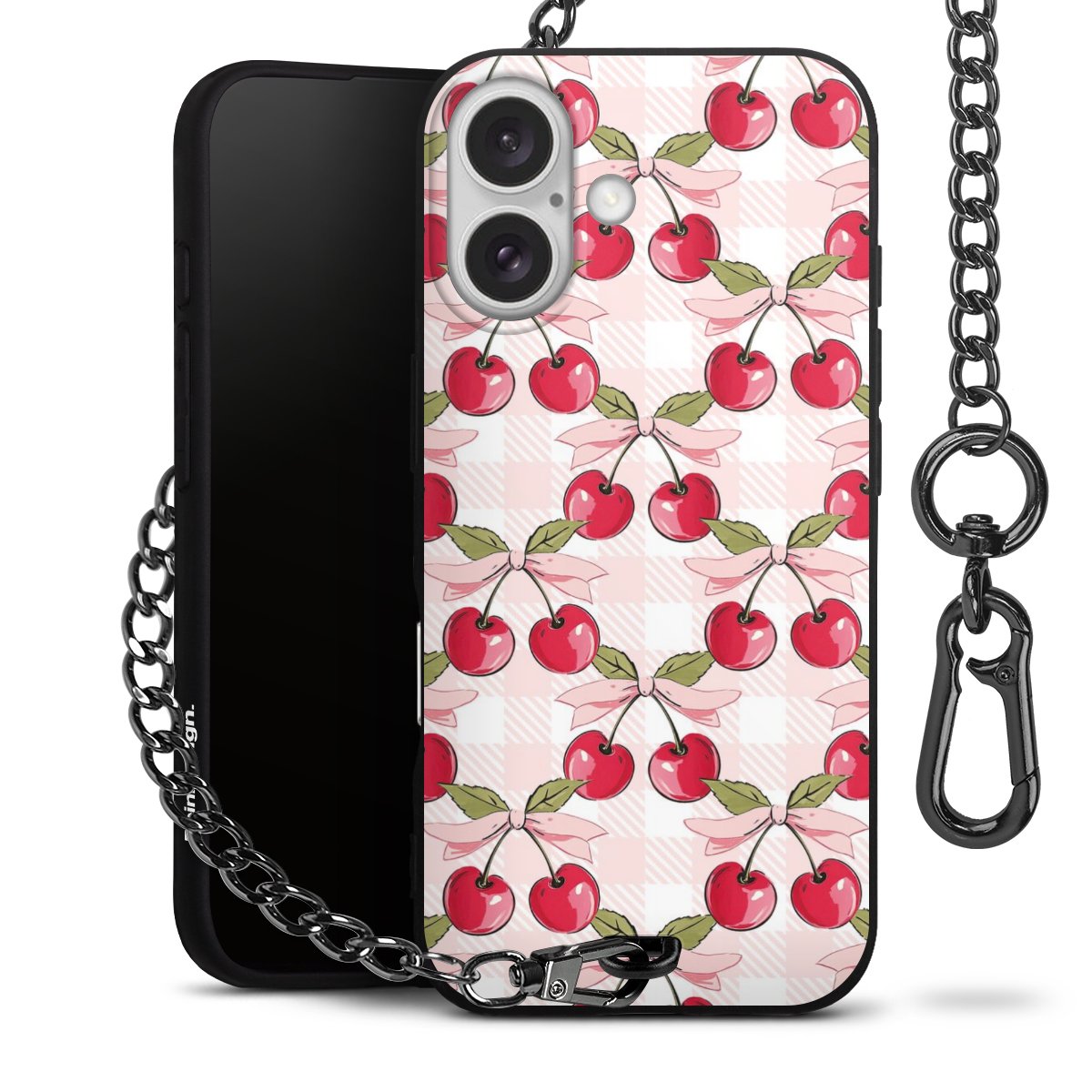• Mattschwarze Handyhülle mit Metallkette