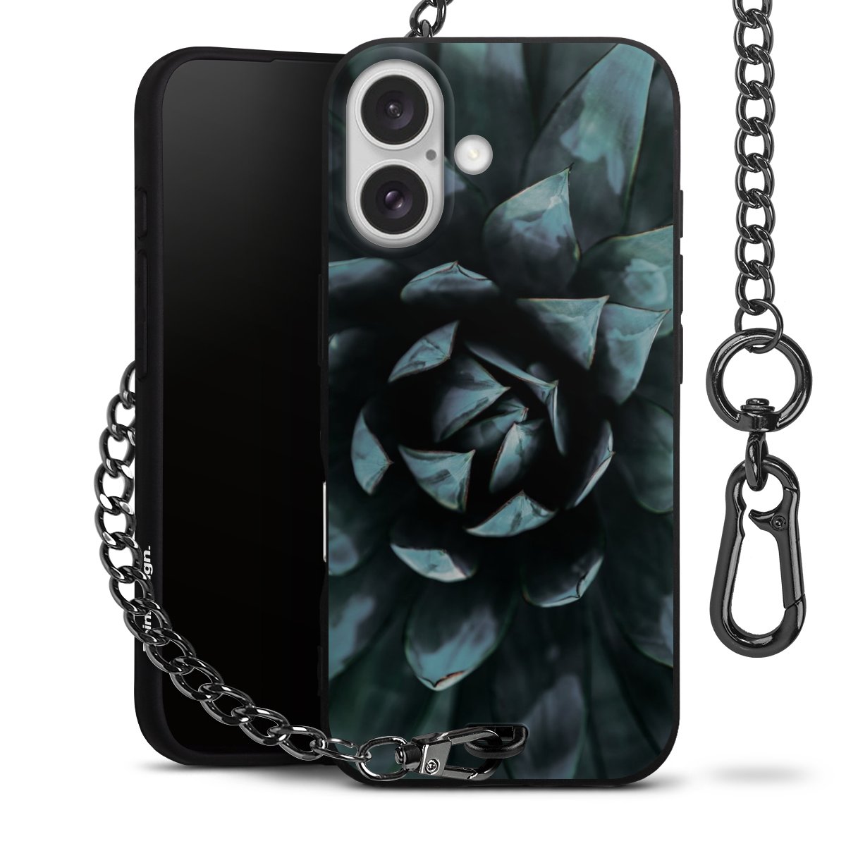 - Mattschwarze Handyhülle mit Metallkette