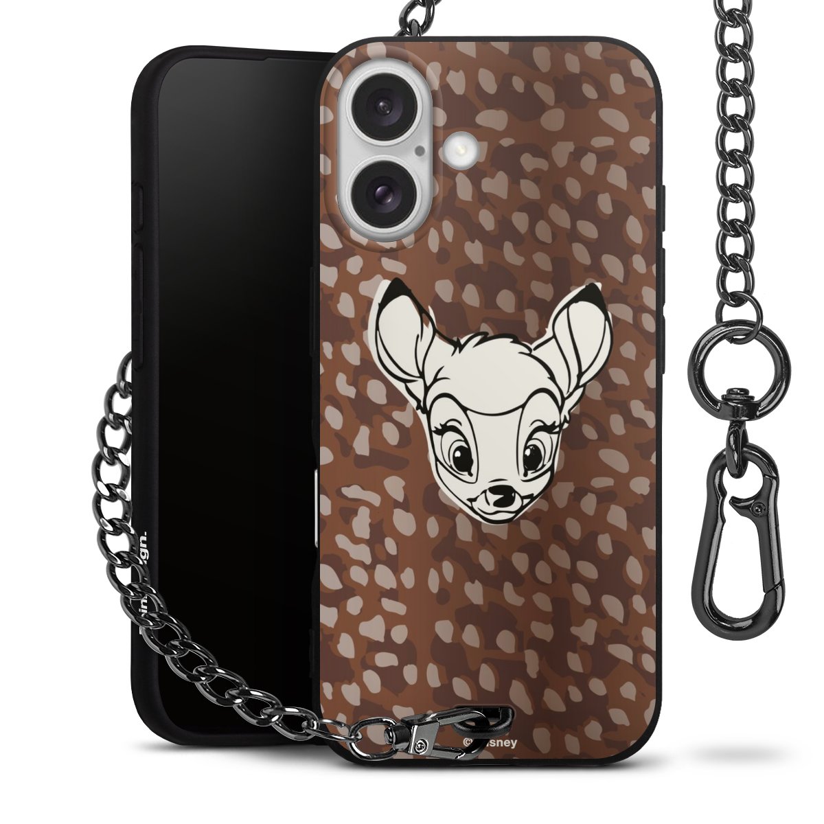 Die Handyhülle verfügt über eine mittig am unteren Rand platzierte Öse, an der die Metallkette stabil befestigt ist. Bestelle die Hülle einfach für Dein Smartphone-Modell, dann passt sie wie angegossen und Du brauchst sie bloß einmal anzudrücken. Handy in die Tasche, Karabiner an den Hosenbund – schon kann die Party starten.