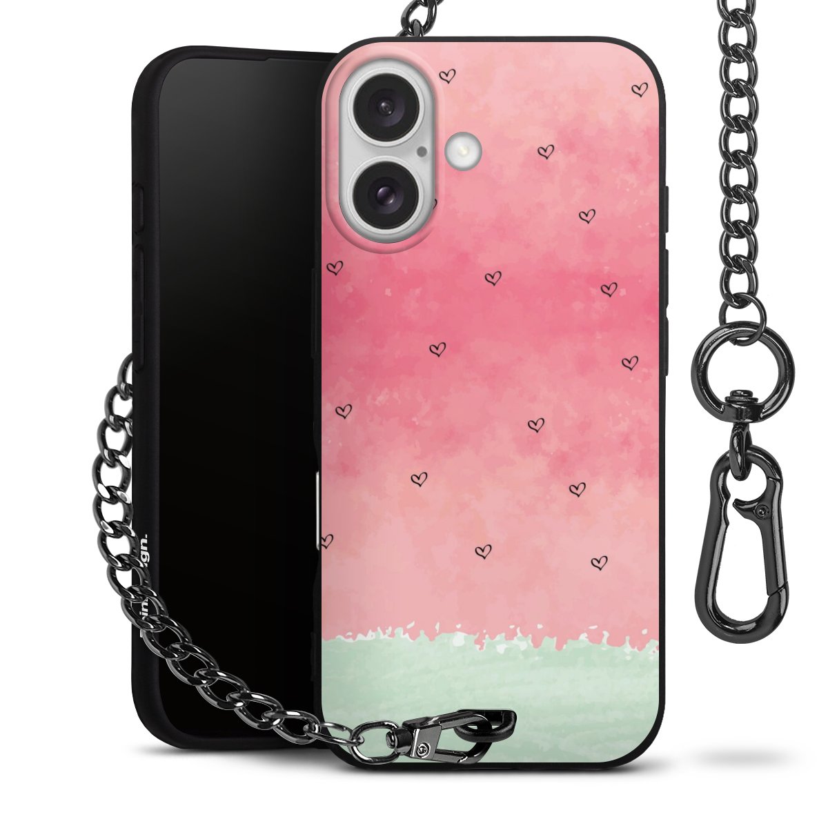 • Mattschwarze Handyhülle mit Metallkette