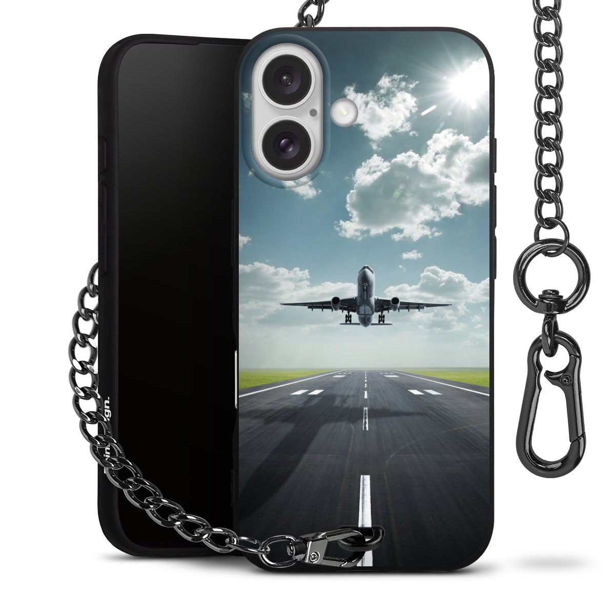 - Mattschwarze Handyhülle mit Metallkette