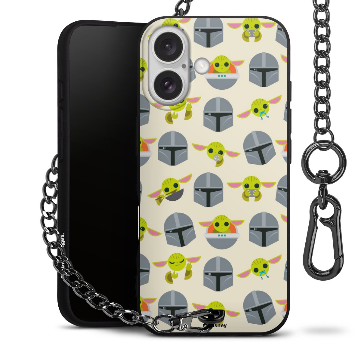 Die mattschwarze Silikon-Handyhülle besteht aus robustem TPU (thermoplastisches Polyurethan). Sie ist flexibel und schützt Dein Smartphone vor Stößen und Kratzern. Die Kette sowie der Karabinerhaken sind aus Metall in Gunmetal-Optik gefertigt. Für dieses Produkt kommen ausschließlich TÜV-geprüfte Materialien zum Einsatz.