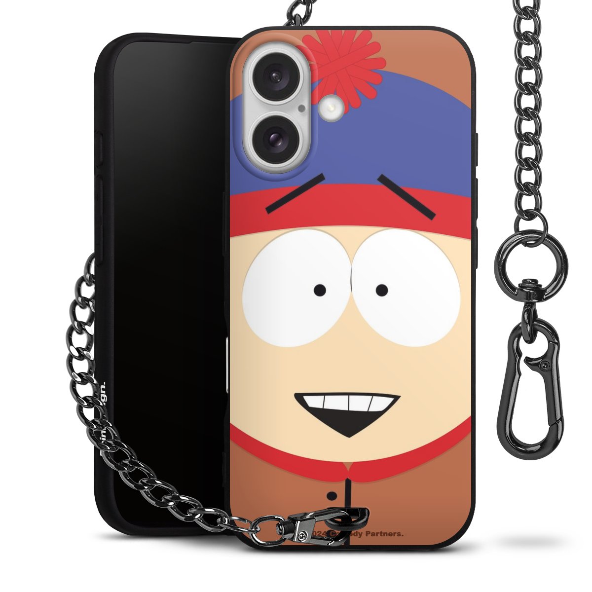 Die Handyhülle verfügt über eine mittig am unteren Rand platzierte Öse, an der die Metallkette stabil befestigt ist. Bestelle die Hülle einfach für Dein Smartphone-Modell, dann passt sie wie angegossen und Du brauchst sie bloß einmal anzudrücken. Handy in die Tasche, Karabiner an den Hosenbund – schon kann die Party starten.