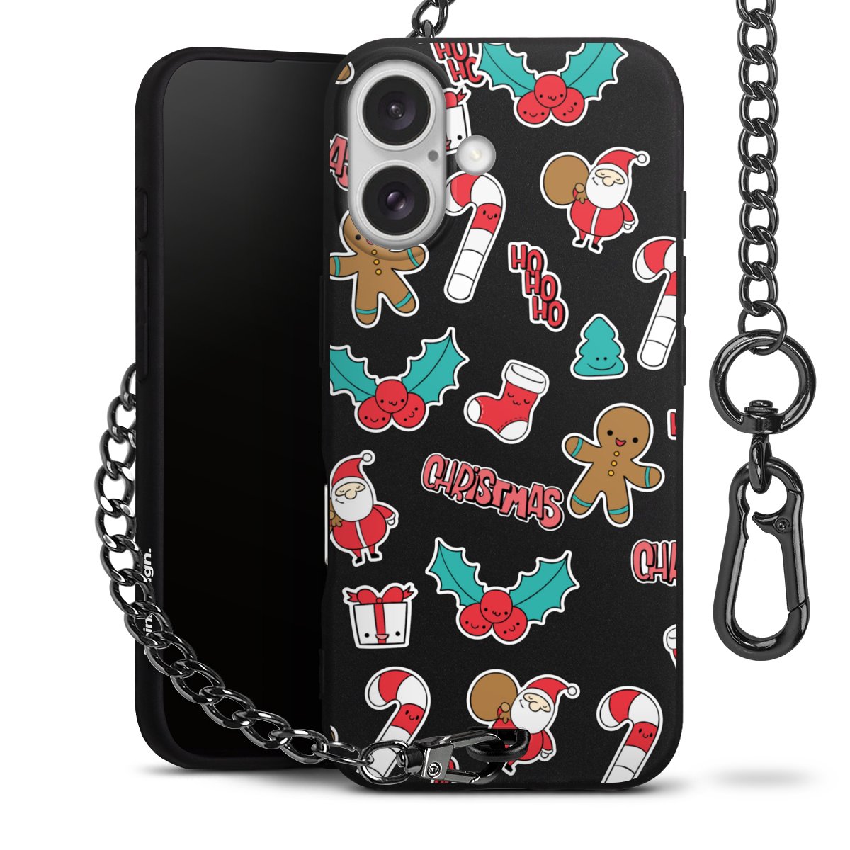 - Mattschwarze Handyhülle mit Metallkette