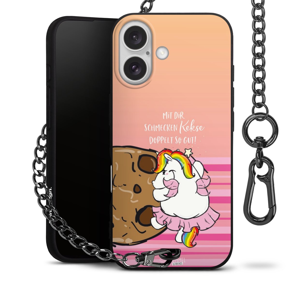 Die mattschwarze Silikon-Handyhülle besteht aus robustem TPU (thermoplastisches Polyurethan). Sie ist flexibel und schützt Dein Smartphone vor Stößen und Kratzern. Die Kette sowie der Karabinerhaken sind aus Metall in Gunmetal-Optik gefertigt. Für dieses Produkt kommen ausschließlich TÜV-geprüfte Materialien zum Einsatz.