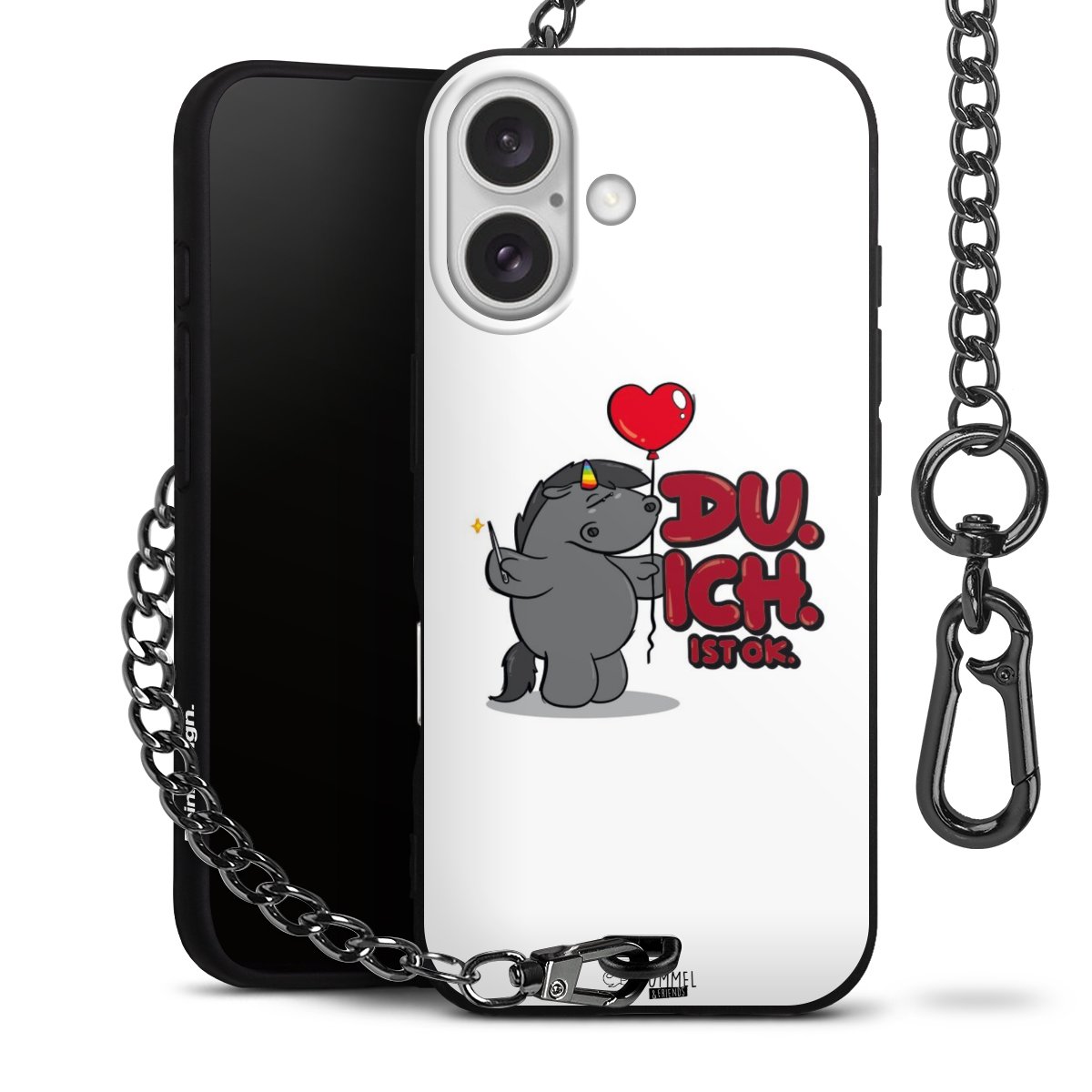 Die mattschwarze Silikon-Handyhülle besteht aus robustem TPU (thermoplastisches Polyurethan). Sie ist flexibel und schützt Dein Smartphone vor Stößen und Kratzern. Die Kette sowie der Karabinerhaken sind aus Metall in Gunmetal-Optik gefertigt. Für dieses Produkt kommen ausschließlich TÜV-geprüfte Materialien zum Einsatz.